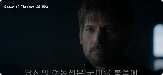 위는 왕좌의 게임 시즌 8 2화, Game of Thrones Season 8 Episode 2에 나오는 대사입니다. 더 많은 표현은 아래 글자를 누르시면 이동합니다.